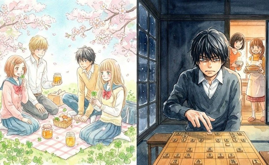 『ハチクロ』が、届かない思いや才能への焦燥といった「若さゆえの痛み」を描いていたのに対し、『3月のライオン』は「どうやって明日を生き抜くか」という切実な生存戦略を描いています。